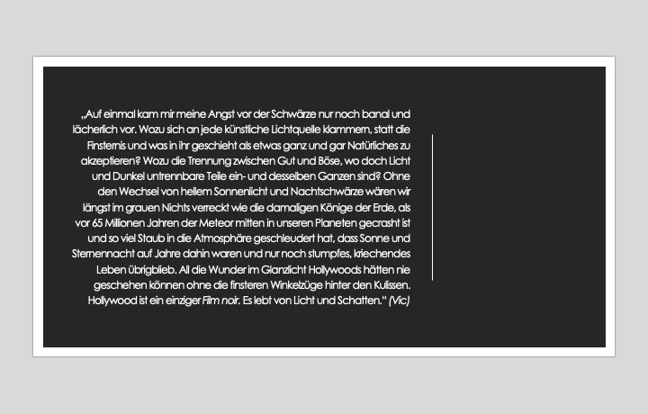 Deshalb, liebe Leserin, lieber Leser, frag nicht, ob alles in meinem Buch so ist, wie es scheint. Mach dich auf Überraschungen und Ungereimtheiten gefasst. Versuche, die Story durch die Augen des Protagonisten zu sehen, und du findest so manche Antwort. Wo du keine findest, folge deiner Fantasie und Intuition. Die moderne Zeit schreit nach Antworten. Dabei bedenken wir nicht, dass vieles, was mit uns und rund um uns geschieht, nicht zu erklären oder zu rechtfertigen ist. Es gibt keine absolute Wahrheit. Zumindest keine, die wir mit fünf Sinnen wahrnehmen können.