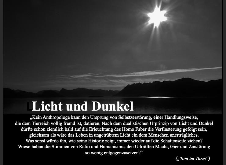 Ich fange ihn auf, halb fallen wir, halb rutschen wir…. Ein Mix aus Ästen, Dornen und Bodenwuchs bremst unseren Fall, bevor die Böschung in die Senkrechte übergeht. Über unseren Köpfen läuft eine Szene wie aus Hartmanns HoloGames: Triumph des Siegers. Der Panther hat den Gegner gerissen, schleift den Besiegten ein paar Meter mit sich, der erlegte Land Rover bäumt sich ein letztes Mal auf und fügt sich in das Unvermeidliche…. Schnauze voran stürzt er in den Abgrund, schlägt ein paar Mal auf, überschlägt sich und gewinnt mit jedem Salto an Tempo, bis er nach kurzem Sturzflug auf der Oberfläche des Sees aufklatscht. Das neue Element braucht bloß Sekunden, bis es sich des Kadavers bemächtigt und ihn zur Gänze verschlungen hat. Eine Weile noch verraten die im Mondlicht glitzernden konzentrischen Kreise die Einschlagstelle. Dann findet die Landschaft zu ihrer Ruhe zurück.
